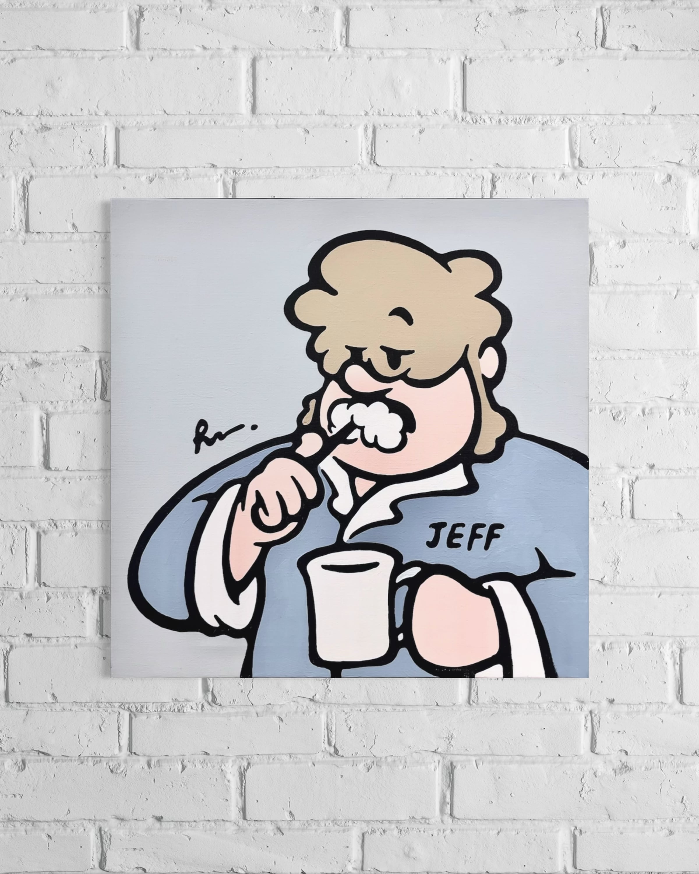 ボサボサの髪で歯磨きをするJEFF