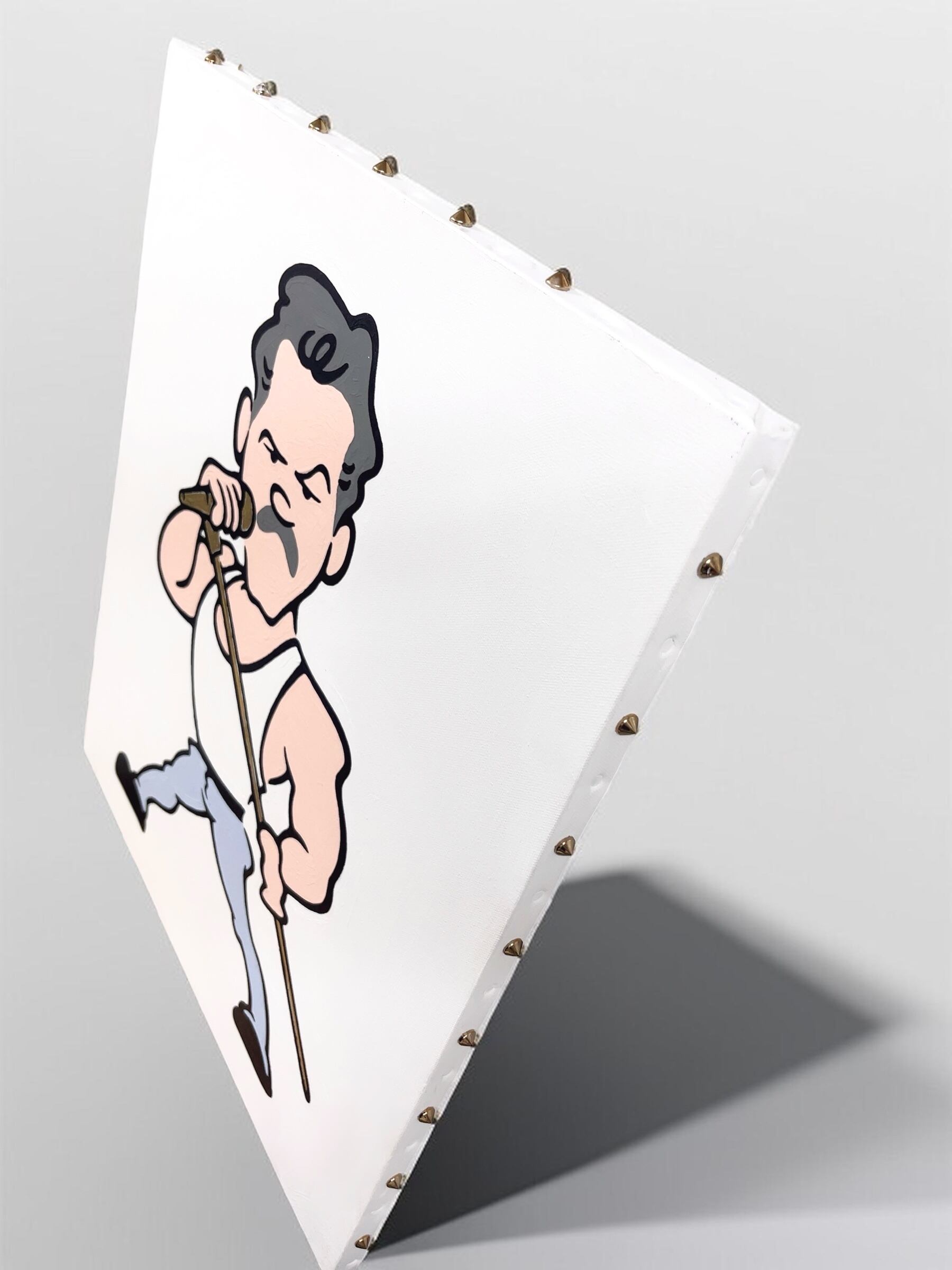 マイクをゴールドに輝く塗装にし、キャンバスの周りはスタッツをつけ、パンクなスタイルをより演出しました。